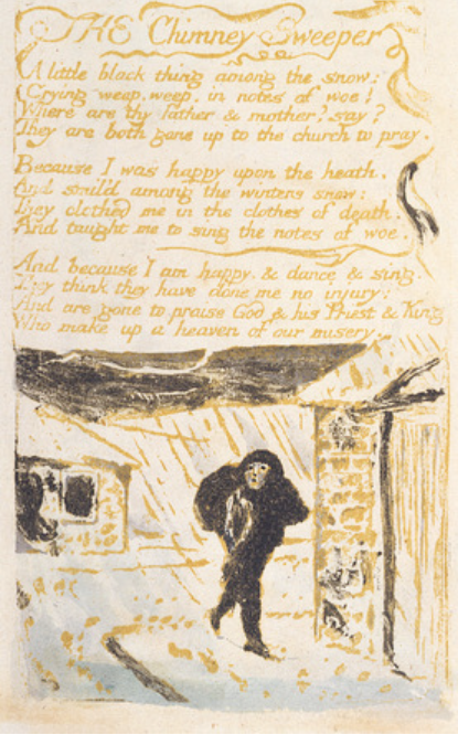 - 낭만주의 시대의 대표적인 작가 중의 한 사람인 윌리엄 블레이크(William Blake, 1757~1827)는 18세기 후반과 19세기 영국의 산업혁명 이후에 두드러졌던 아동 노동력 착취에 대한 어두운 배경을 작품