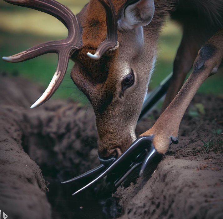 - 날카로운 앞 발굽으로 땅에 잘 보이지 않도록 도랑(scrape)을 팠습니다.