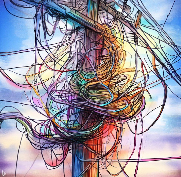 - 이리저리 얽힌 전신선을 비유한 대표적인 사례가 있었다고 합니다.