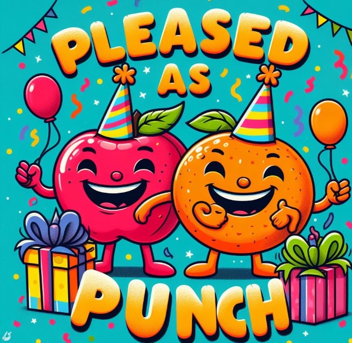 - 19세기 중반에 Pleased as Punch는 '아주 기쁜, 만족스러운' 이라는 의미로 널리 쓰이게 되었습니다.